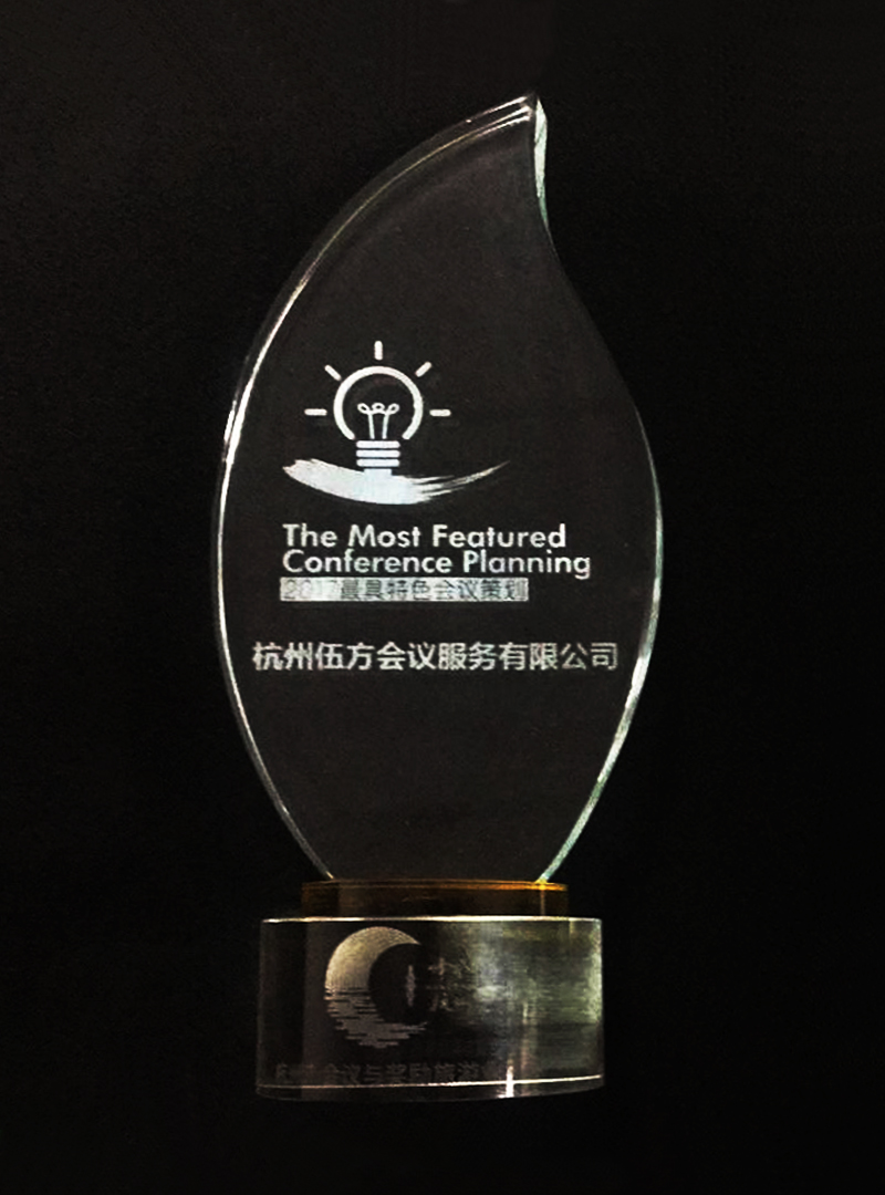 杭州伍方會議服務有限公司被杭州會議與獎勵旅游業(yè)協(xié)會授予“The Most Featured Conference Planning/2017杭州最具特色會議策劃企業(yè)”的榮譽稱號。
